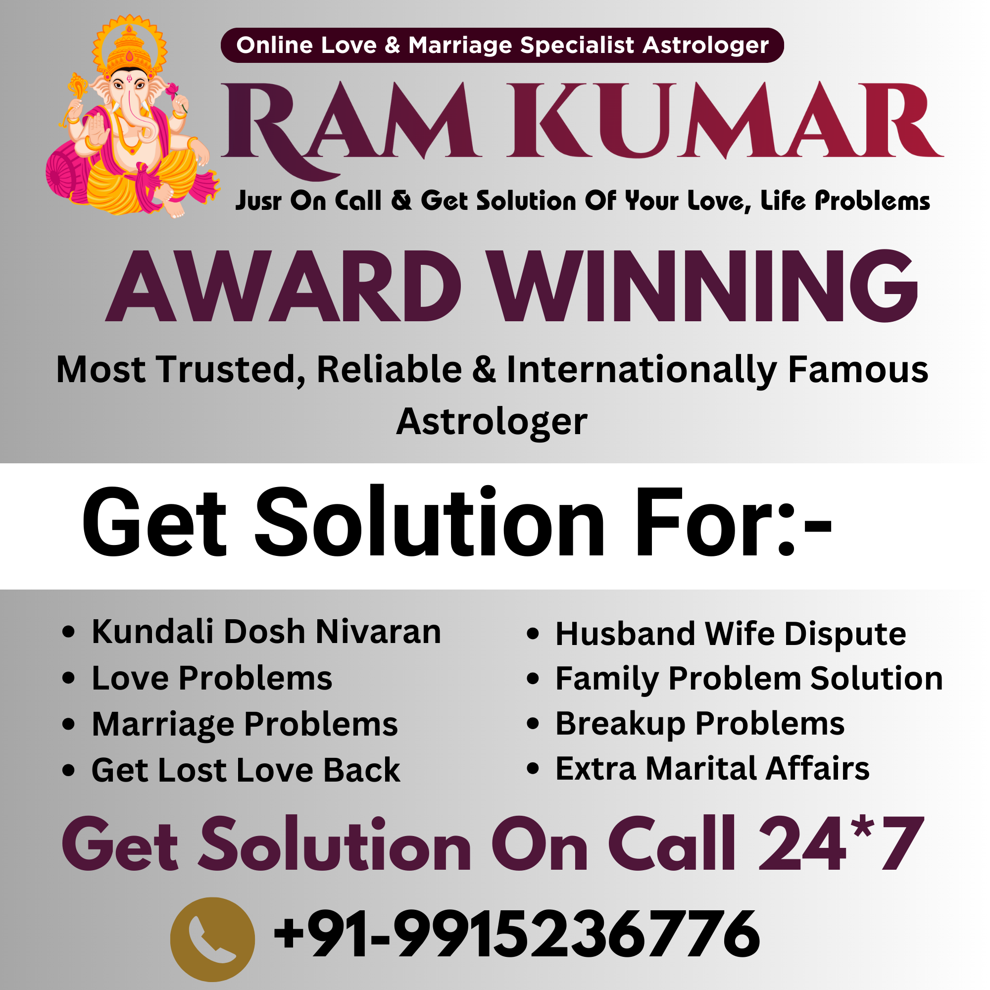 Famous Astrologer Ram Kumar ji is very expert in Love back, if you love someone and by some misunderstanding, you lost him/her then don't worry about it just contact to Love Back Specialist He will solve this problem very easily and you will get your Love for forever in your life.